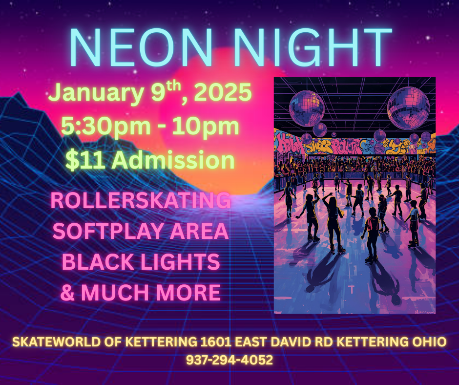 Wear your brightest NEON and watch your outfit light up the rink under the blacklights! ๐