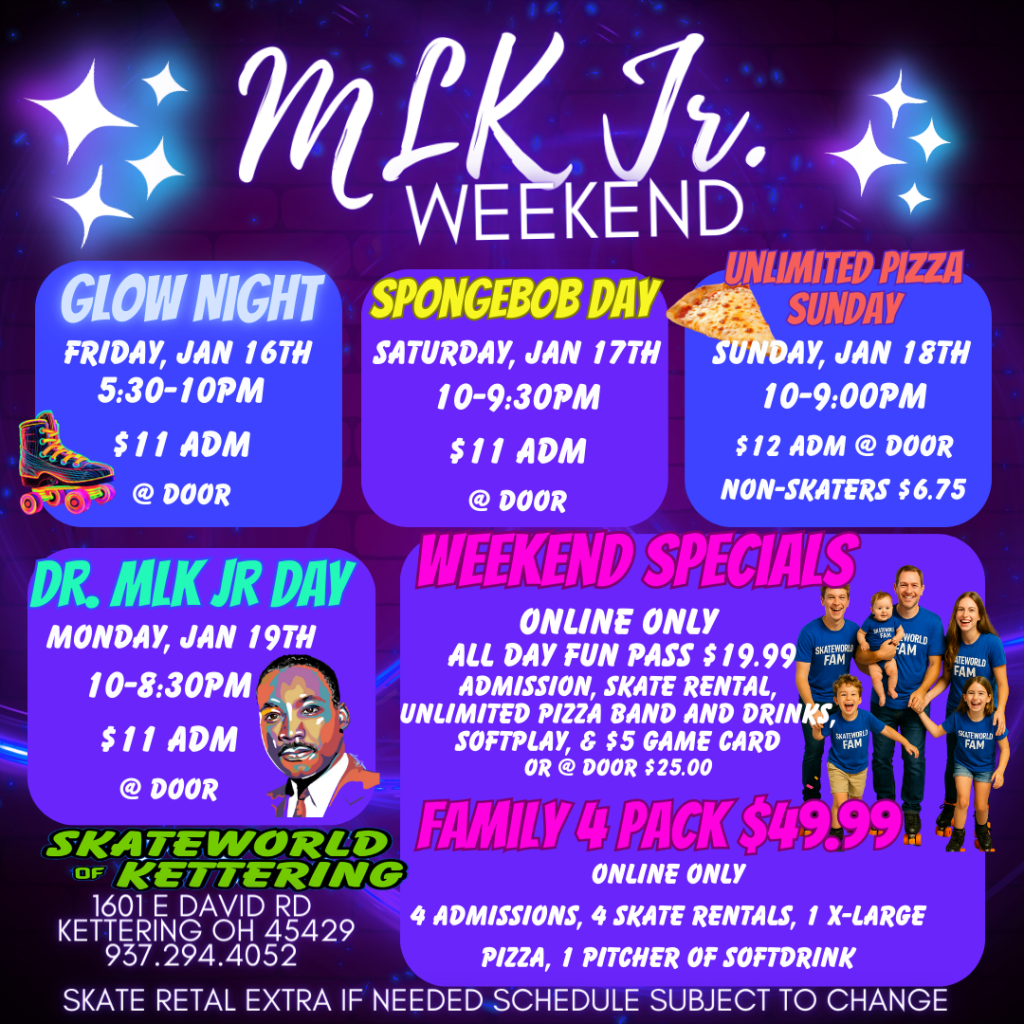 Enjoy our extra skating hours during MLK Jr. Weekend