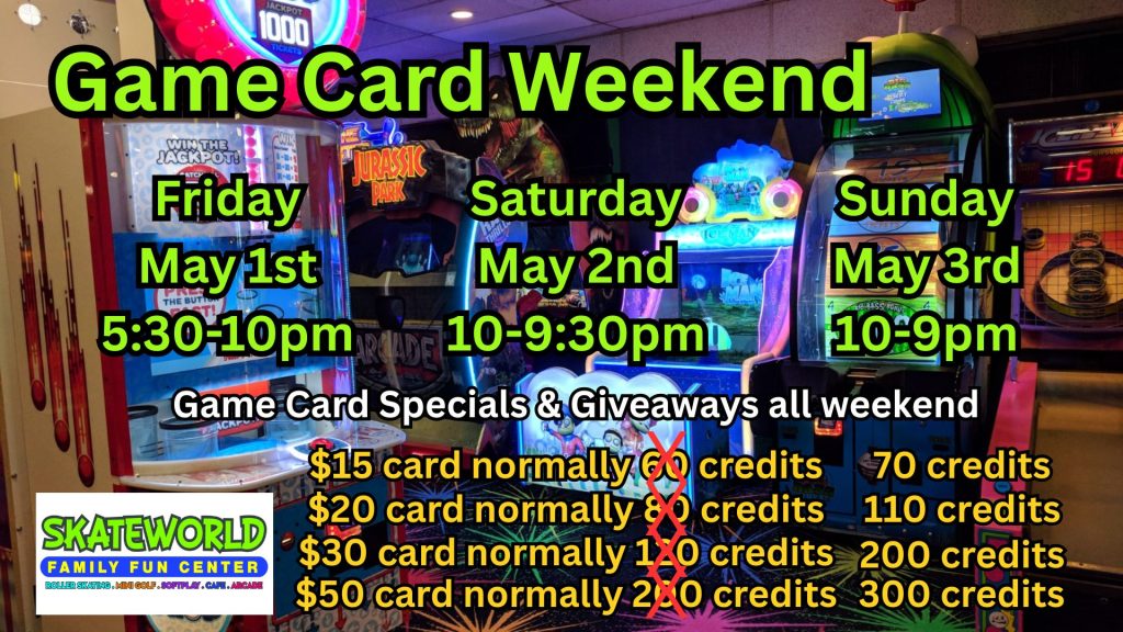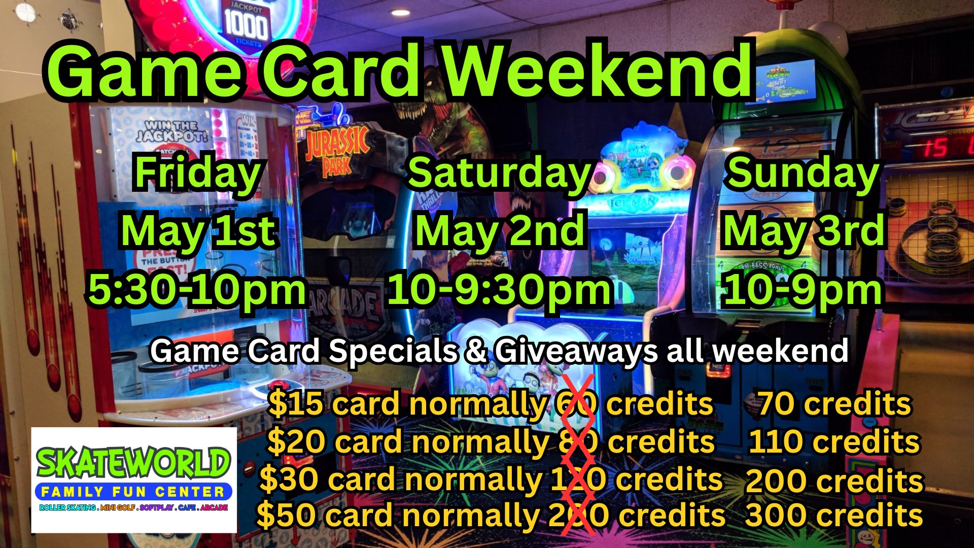 We’re bringing you Game Card Weekend, packed with awesome deals where you’ll get EXTRA credits for MORE playtime in the arcade!